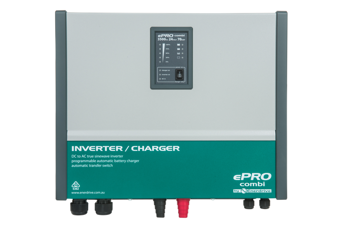 Available in 12v, 24v or 48v models and ranging in sizes from 1600-3500w inverter output and 35-120A charger output, the ePRO Combi has a unit to suit nearly any application.