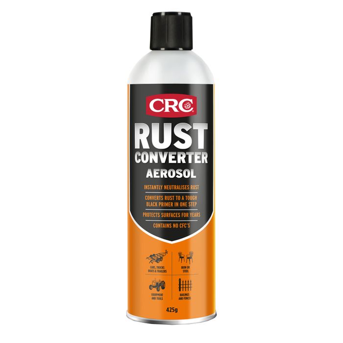 CRC Rust Converter is a unique fast drying coating formulated for treatment of lightly rusted or correctly prepared metal surfaces. CRC Rust Converter neutralises rust and converts it to a tough black primer in one easy step. It binds to the surface and provides a waterproof barrier by sealing out moisture and other outside elements for effective long-lasting rust protection. No more sandblasting, heavy scraping, or grinding.