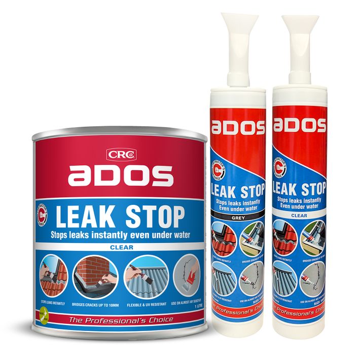 ADOS Leak Stop is an instant waterproofing sealant that can be applied in rain, snow, and even under water, sealing immediately with no fear of wash off. Bridging cracks and gaps up to 10mm in both WET and DRY conditions ADOS Leak Stop provides superior flexibility, strength, and durability, perfect for almost every application.