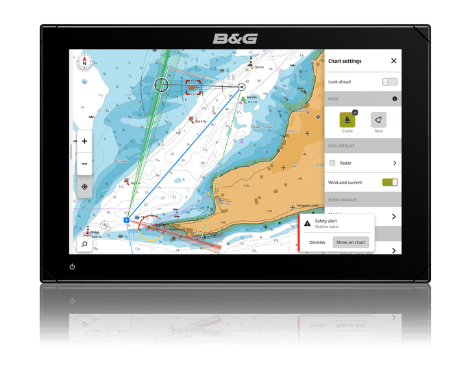 Improve your sailing with easy to interpret pointers from B&G®’s award-winning sailing features for cruising and racing, with updates to SailSteer™, Laylines, StartLine, Routes, Racing and many more. C-MAP® powered Safety Alerts guard against grounding and dangerous objects.