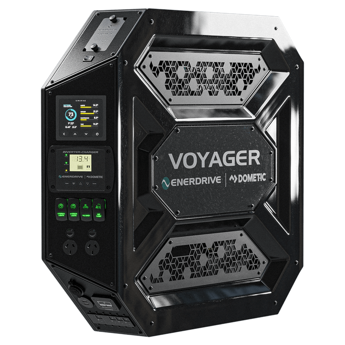 The Voyager power system includes a 3000W/100A Inverter Charger, 40+ DC2DC Charger, Simarine Monitoring System and Laser etched Rocker Switches making it the most powerful canopy system Enerdrive has ever built.