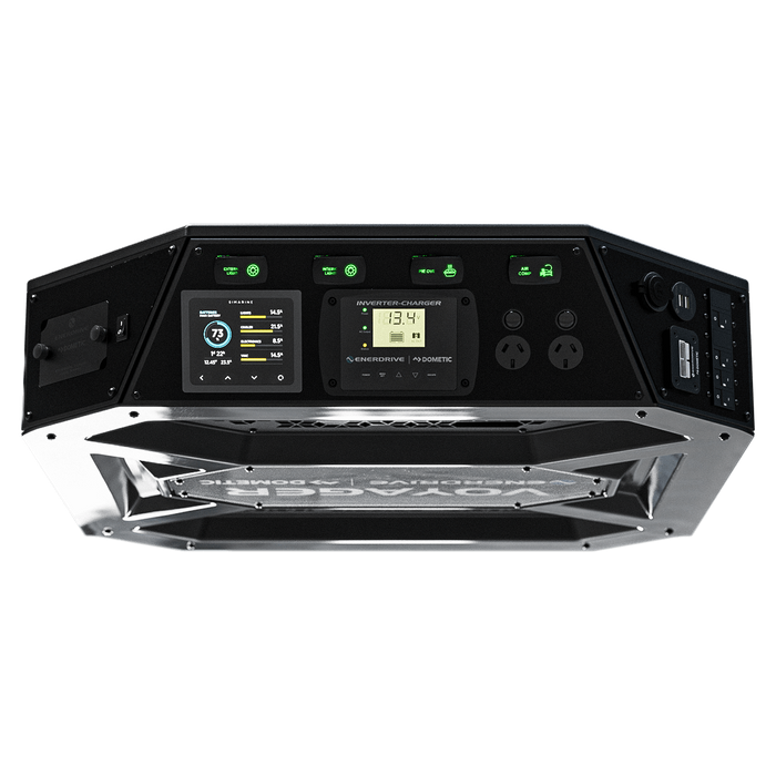 The Voyager power system includes a 3000W/100A Inverter Charger, 40+ DC2DC Charger, Simarine Monitoring System and Laser etched Rocker Switches making it the most powerful canopy system Enerdrive has ever built.