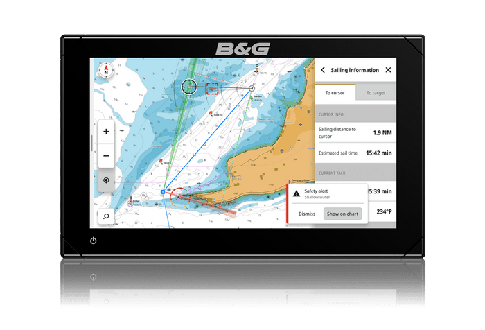 Improve your sailing with easy to interpret pointers from B&G®’s award-winning sailing features for cruising and racing, with updates to SailSteer™, Laylines, StartLine, Routes, Racing and many more. C-MAP® powered Safety Alerts guard against grounding and dangerous objects.