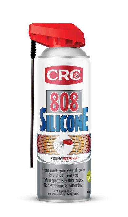 CRC 808 Silicone is a multi-purpose silicone spray for general lubrication. It leaves a thin, clear, odourless film that lubricates, waterproofs and revives without damaging treated surfaces or leaving marks or stains. It provides ongoing protection over a wide range of temperatures and pressures.