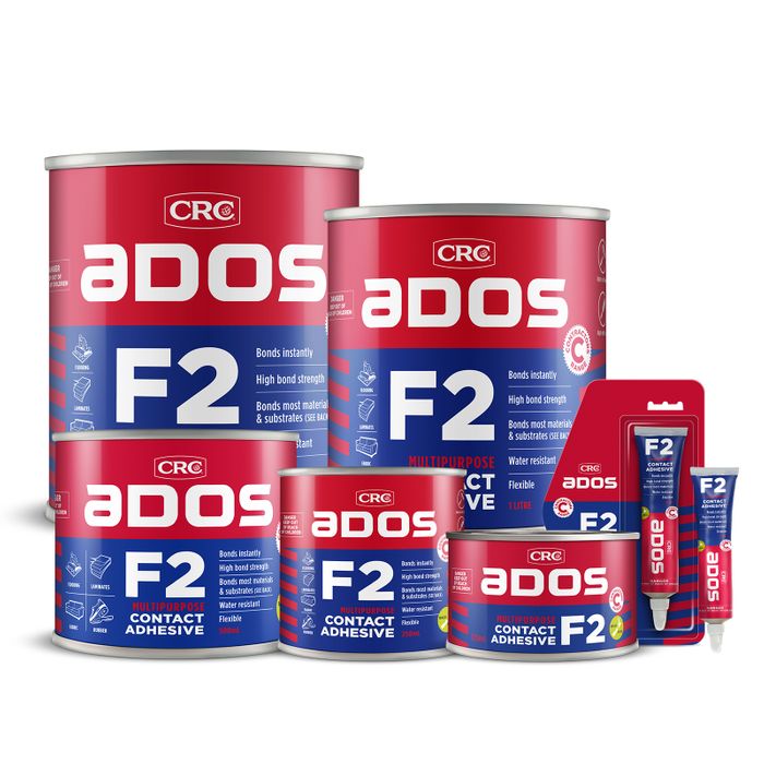 ADOS F2 Multipurpose Contact Adhesive is a high-performance general-purpose contact adhesive. It is water-resistant and flexible and its high bond strength makes it ideal for a wide range of uses. It is easily applied, highly versatile, durable and bonds instantly to most substrates.