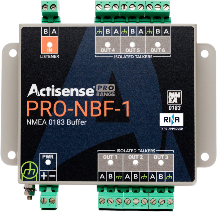 The Type approved NMEA Buffer PRO-NBF-1 Buffer isolates and buffers NMEA 0183 data, with the power to drive multiple devices.