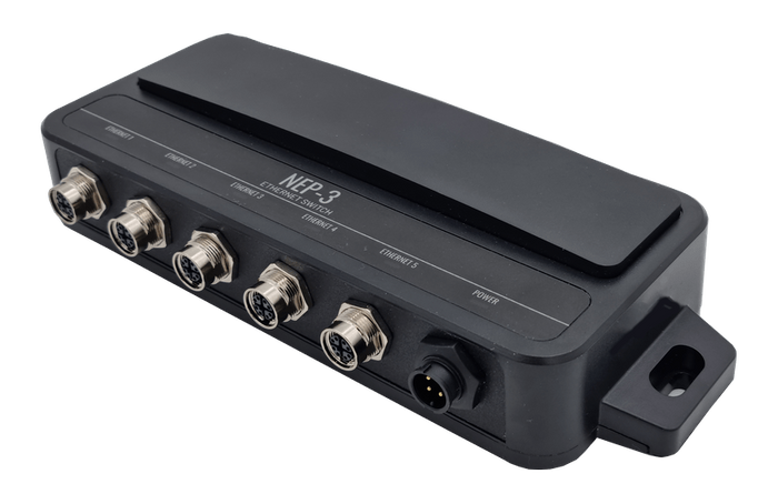 NEP-3: Five port (M12) Gigabit Ethernet switch.