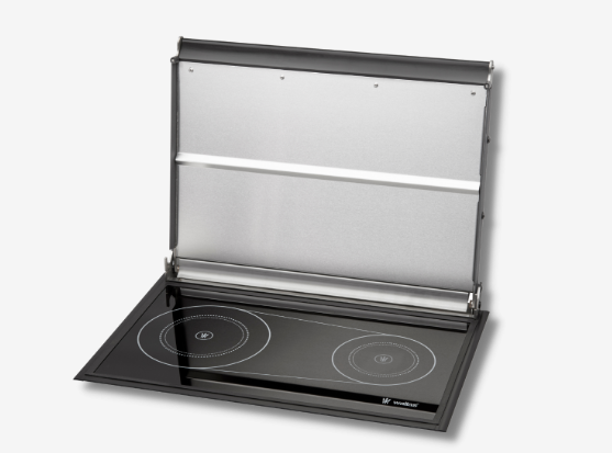 This flat-design stove has been constructed with flat aluminium edges and protrudes just 2 mm above the surface of the counter.